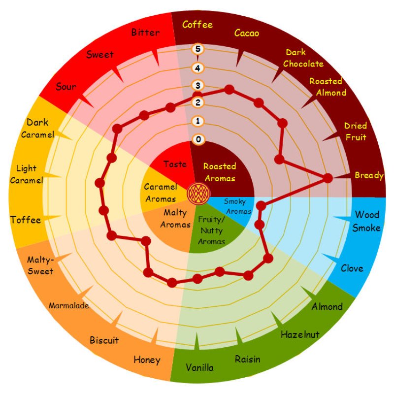 Senzorické vlastnosti: Intenzivní vůně chleba, kávy, hořké čokolády a sušeného ovoce. Vytváří sametově hebký pocit v ústech.